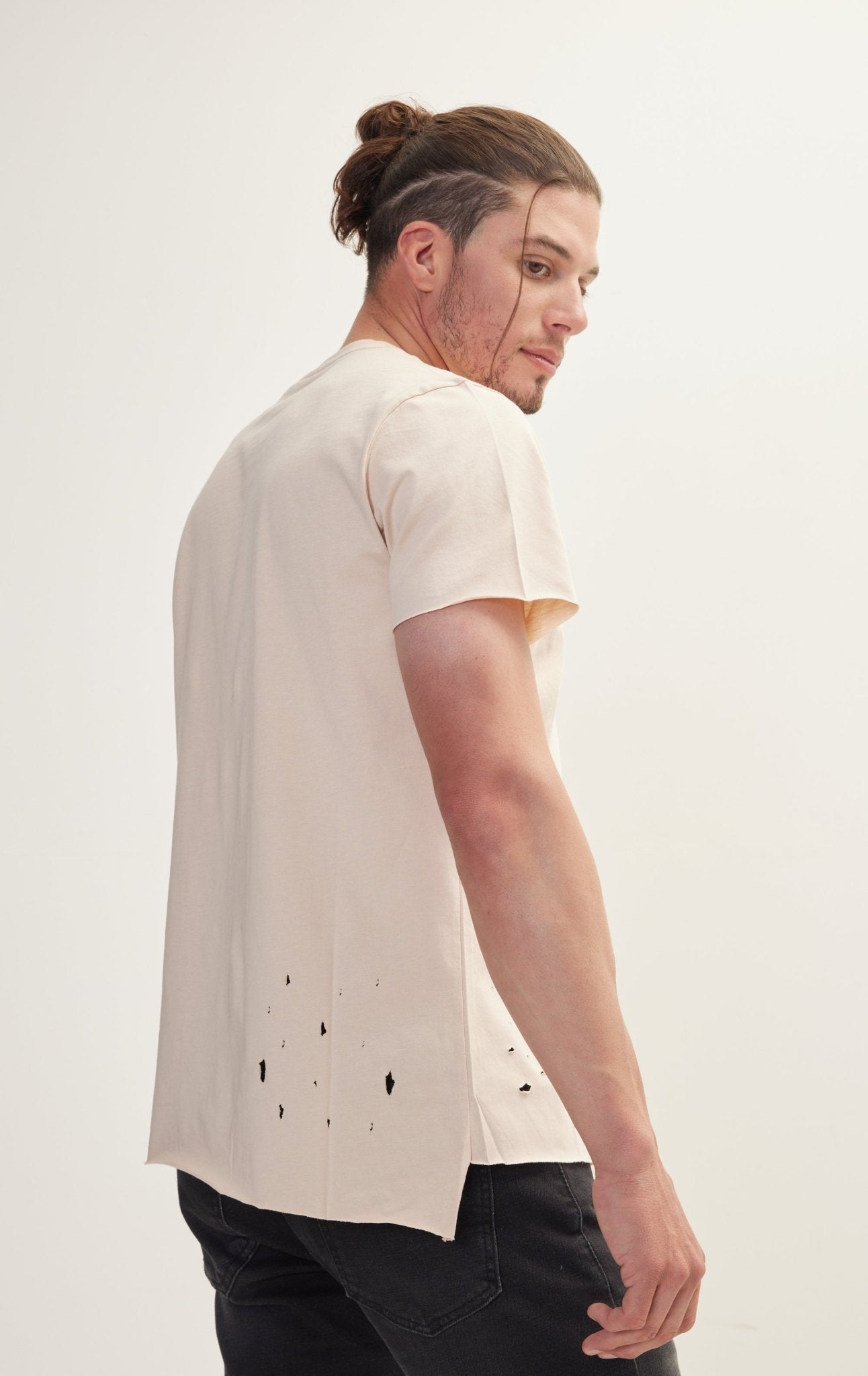Asymmetric Stitched Distorted T-Shirt - Stone