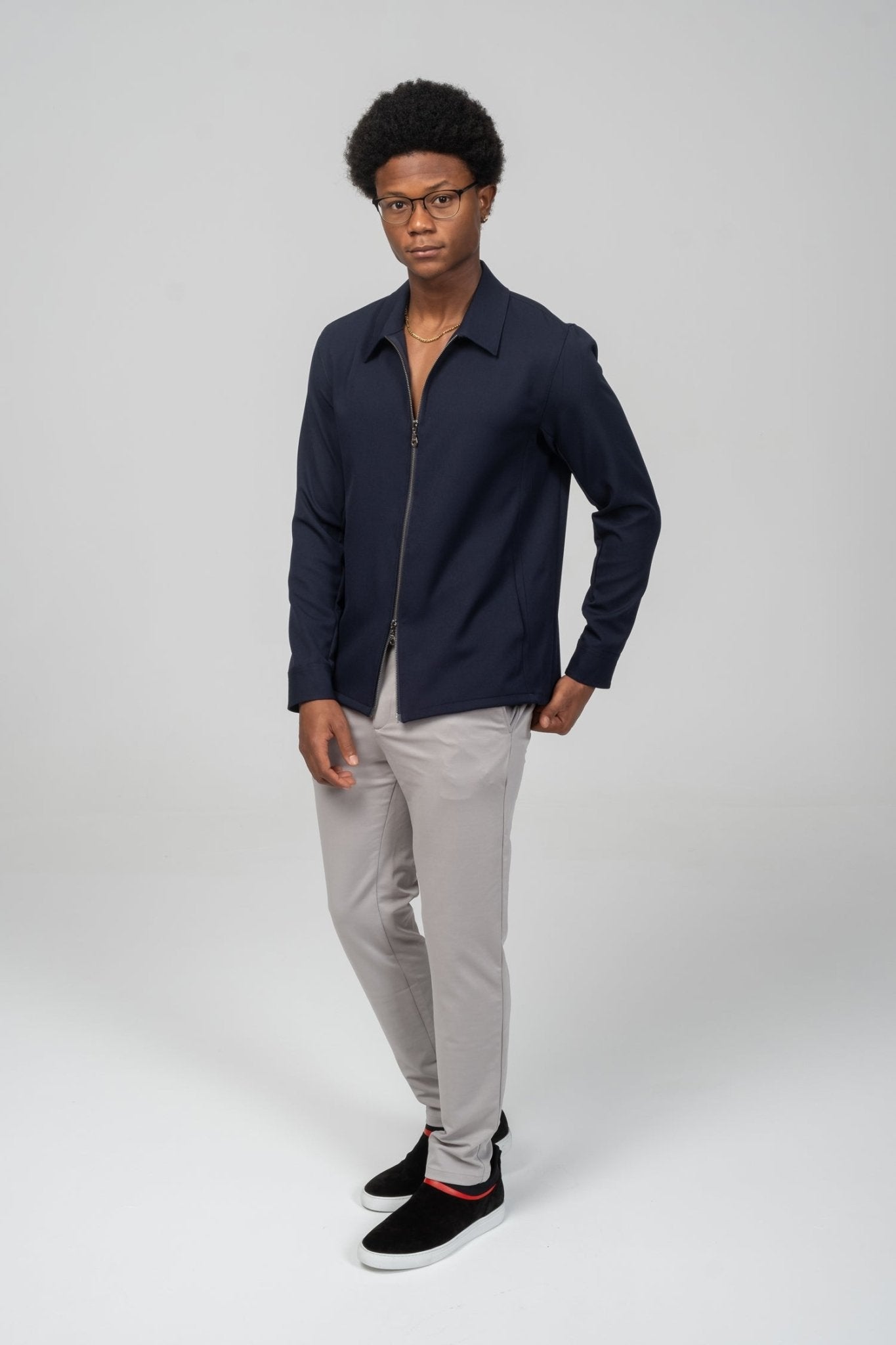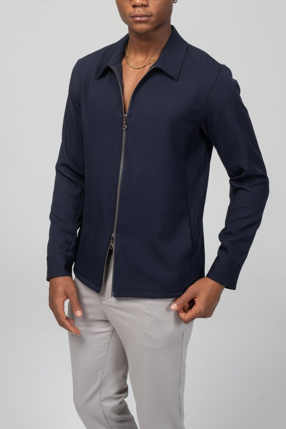 Double Zipper Closure Lightweight Shacket - Navy