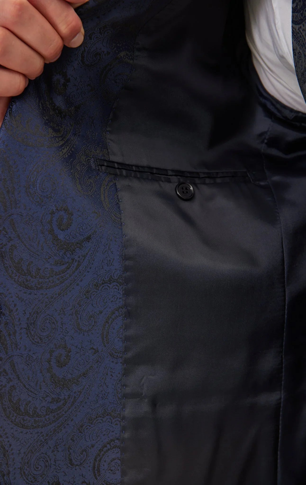 Paisley High Peak Lapel Tuxedo Jacket - Navy