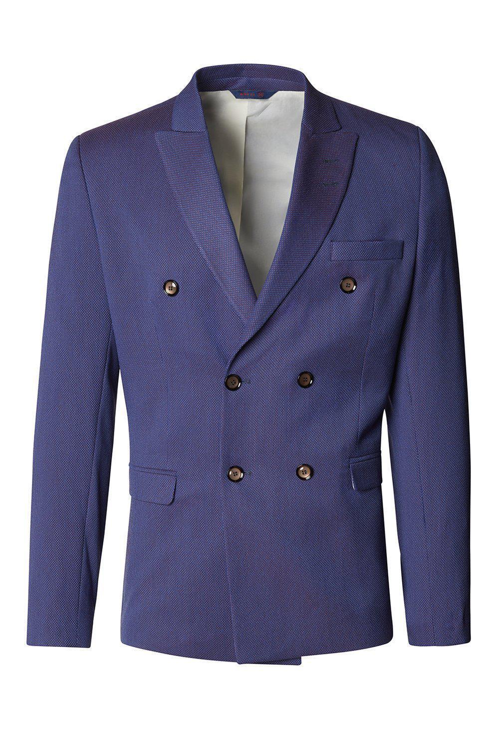 Tailoring is a little more relaxed and laid-back this time around, so this blazer has an unstructured shape. It's made from a light-wine poly blend that's lined for lightness. The double-breasted close and position of the front pockets help to broaden your frame.