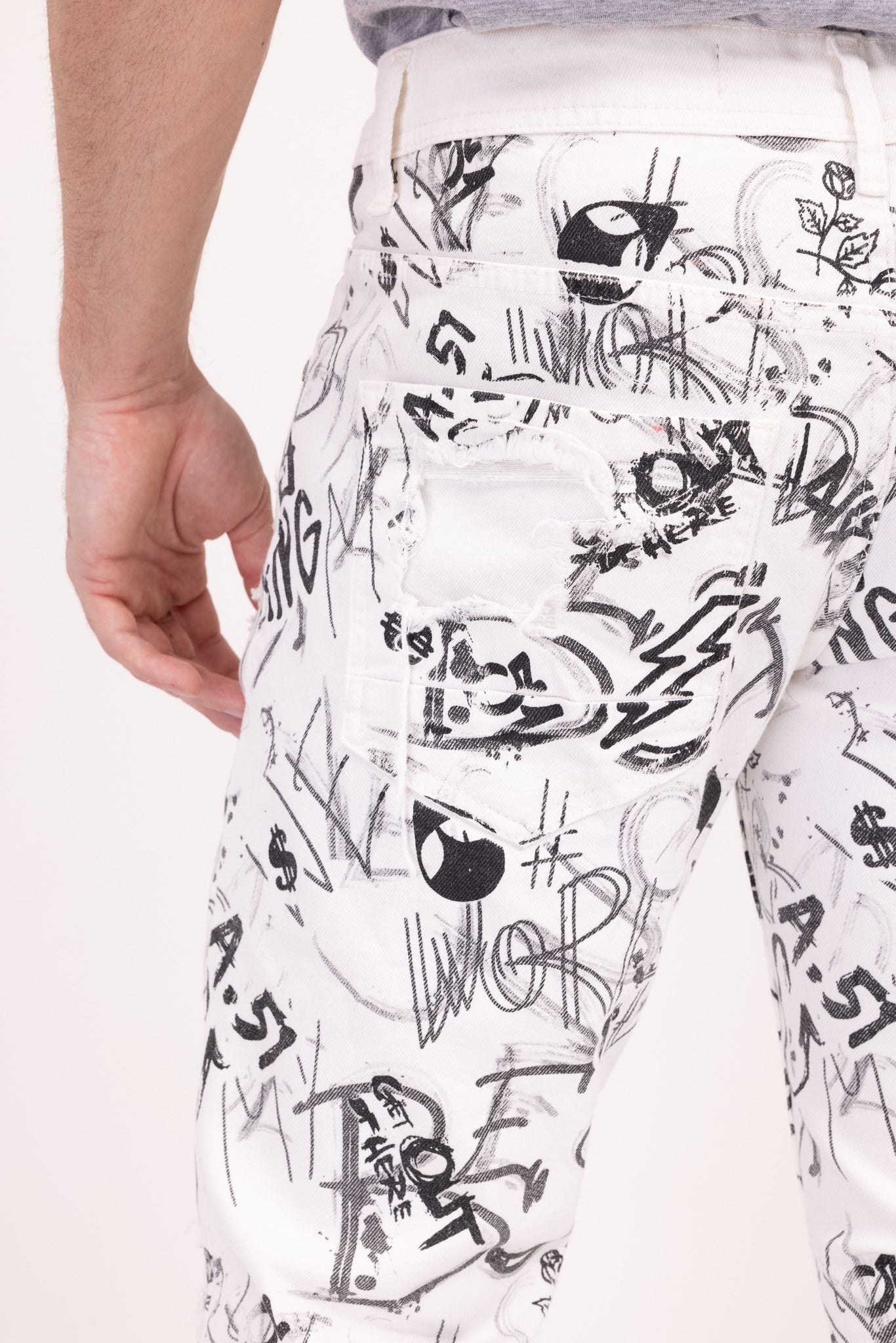 Funky Scribbled Denim Jeans - White