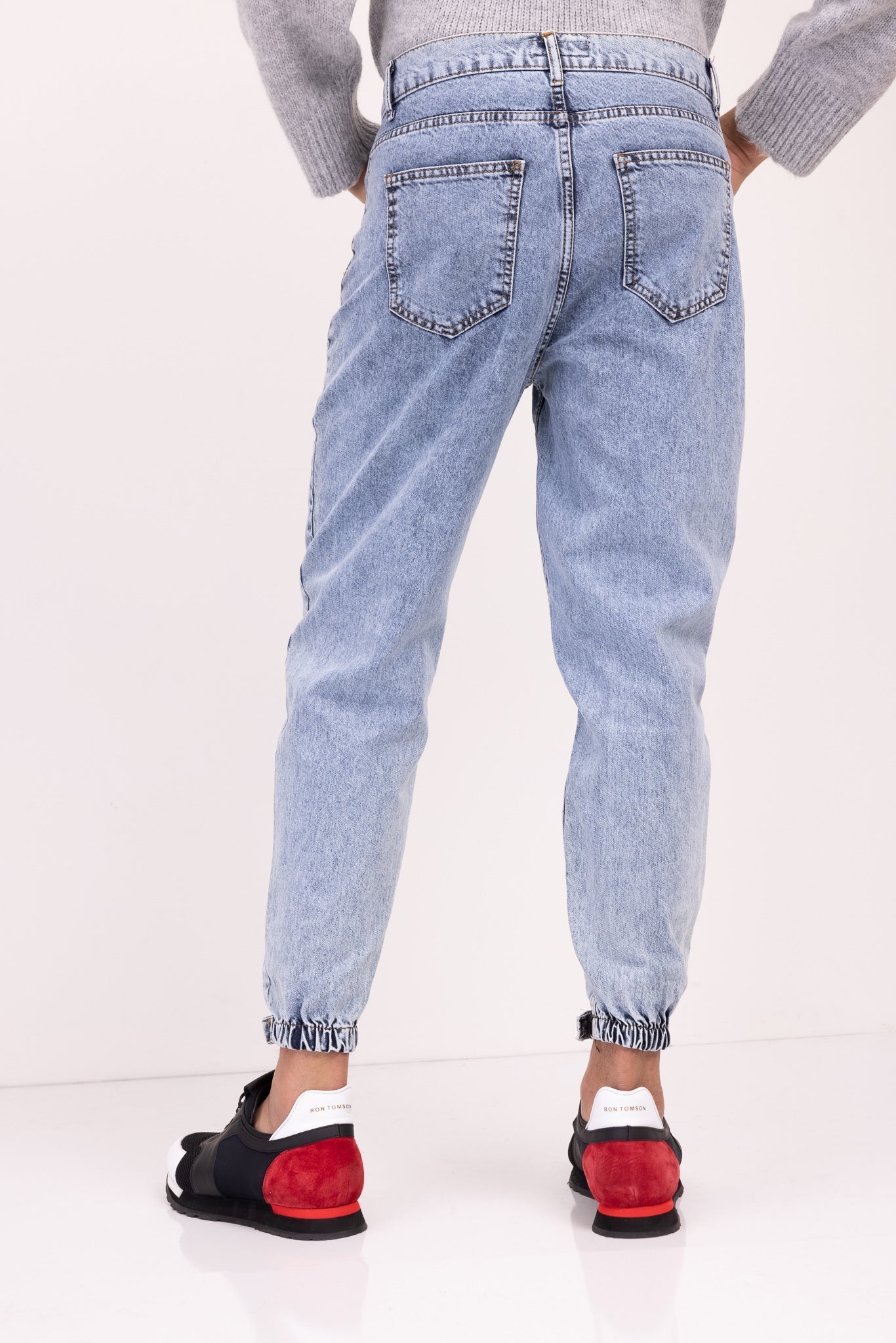 Feeling nostalgic? This 80's inspired washed soft cotton denim jogger features a comfortable fit, utility pockets, metal hardware, and new stretchy "velcro over strap" jogger hem closure. Rock the set and pair it with our 80's denim pullover hoodie.