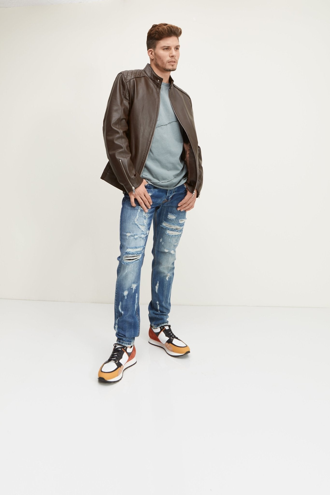 Our ‘55 jeans are an icon of mid-century biker style - they have a boxier, "anti-fit" seat that creates more room to move. Take note of the unique wash that creates a lived in look.