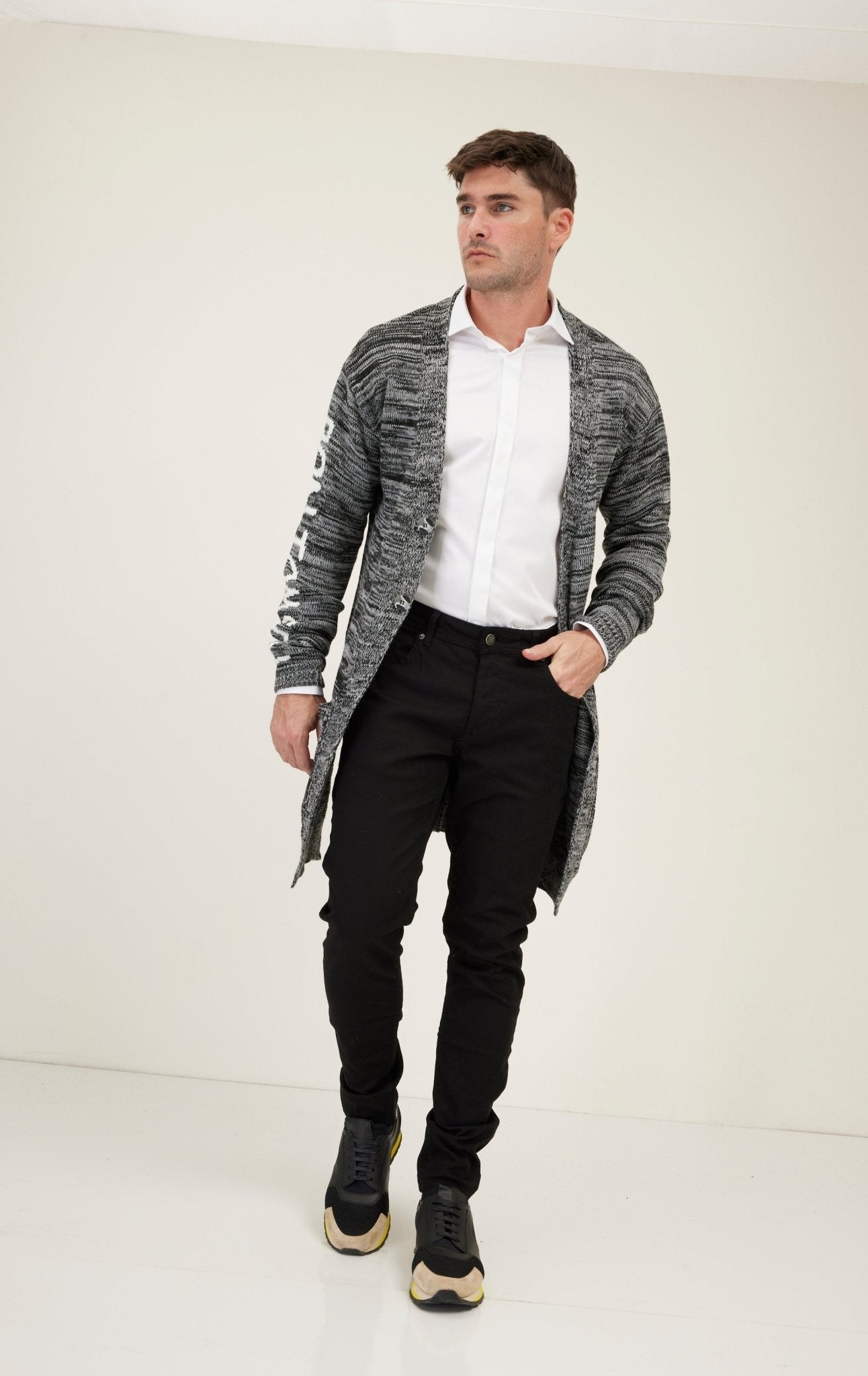 Dreamers Longline Cardigan - Black Grey