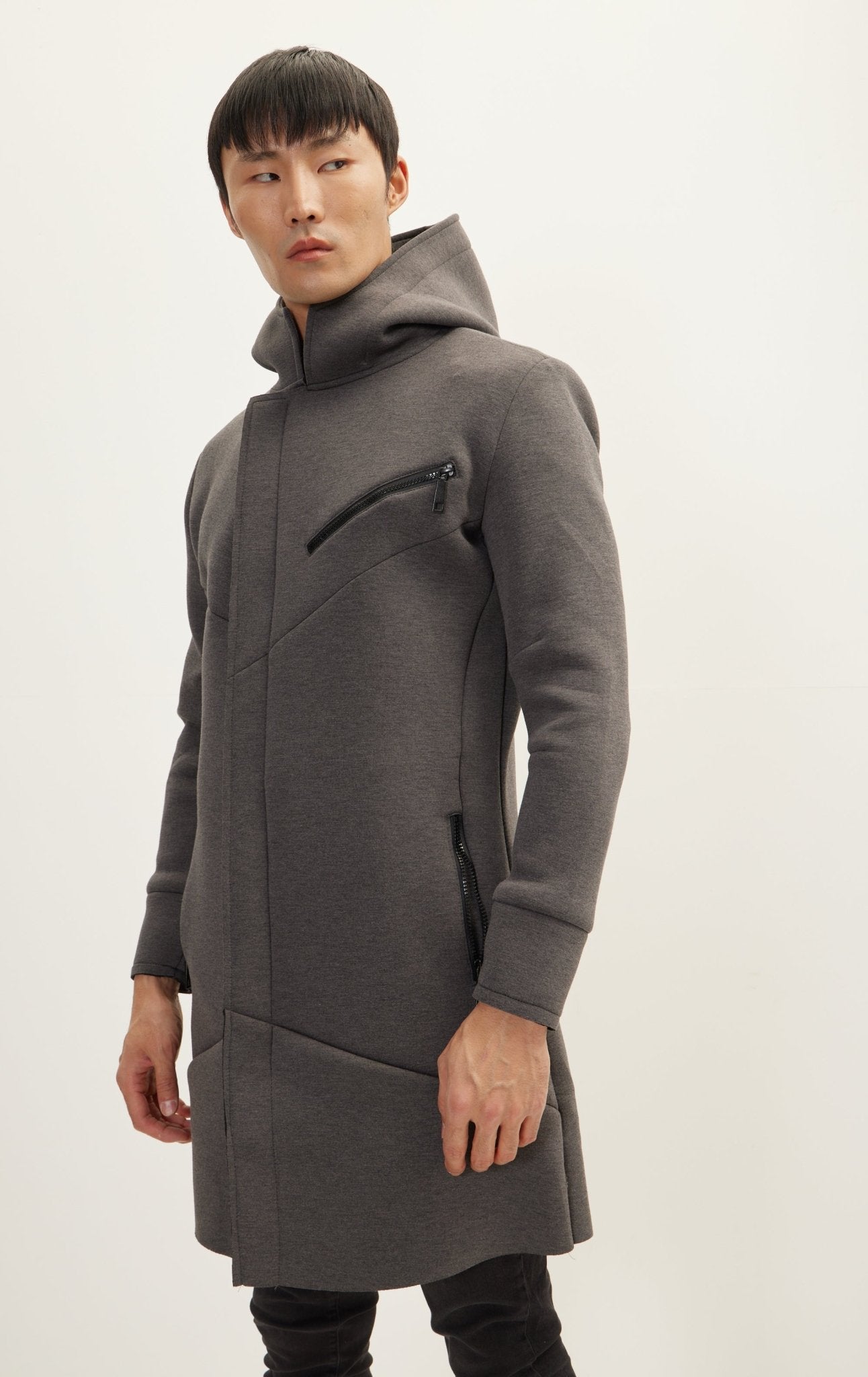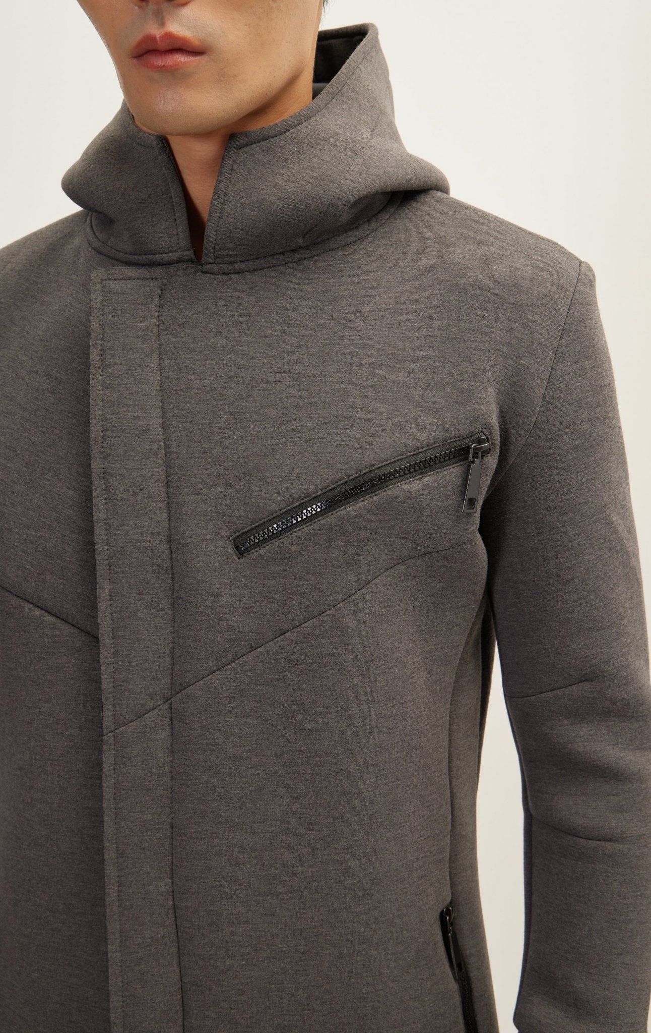 Linear Hooded Long Knit Zipper Jacket - Anthracite
