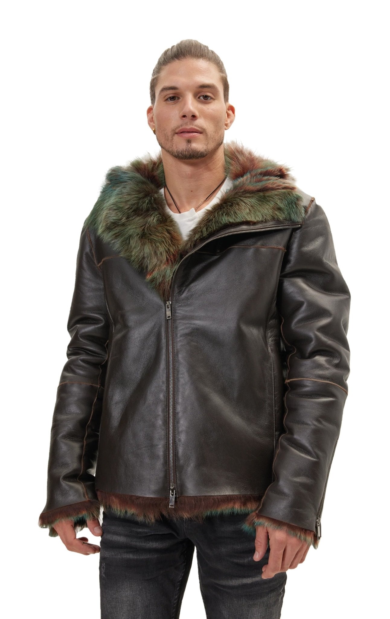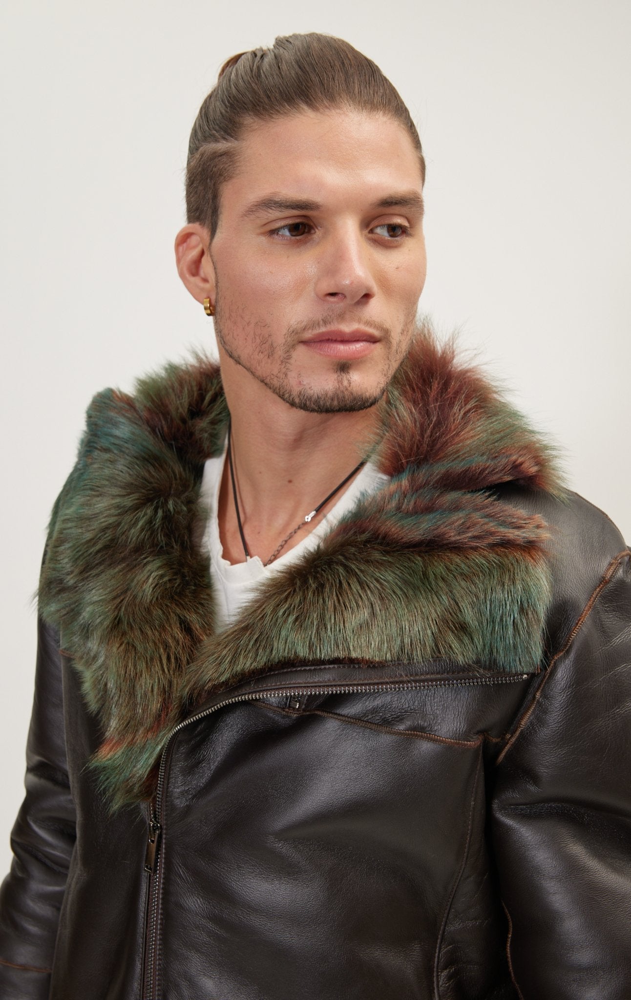 Reversible Toscana Shearling Genuine Leather Jacket - Dark Brown