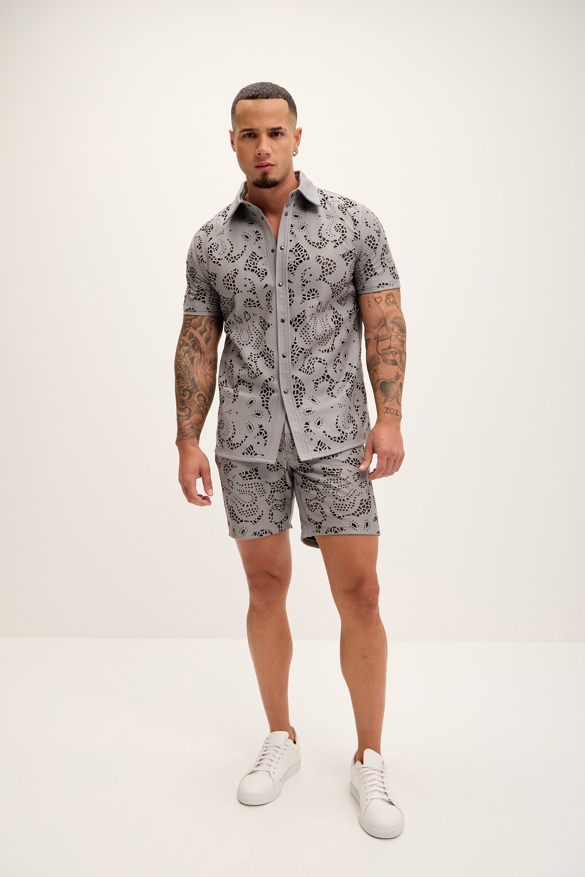 Cut-out Laser Leather Shirt - Grey