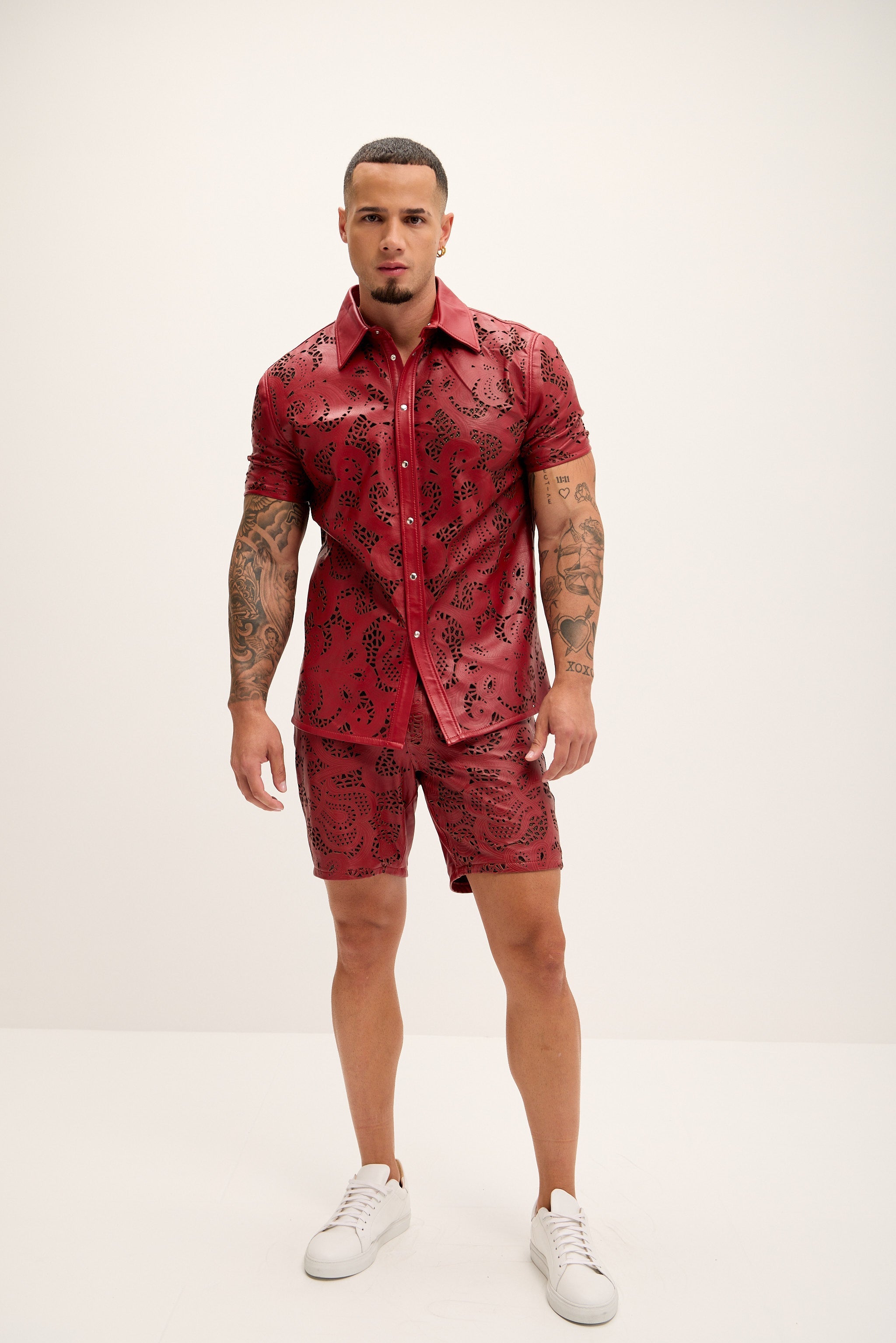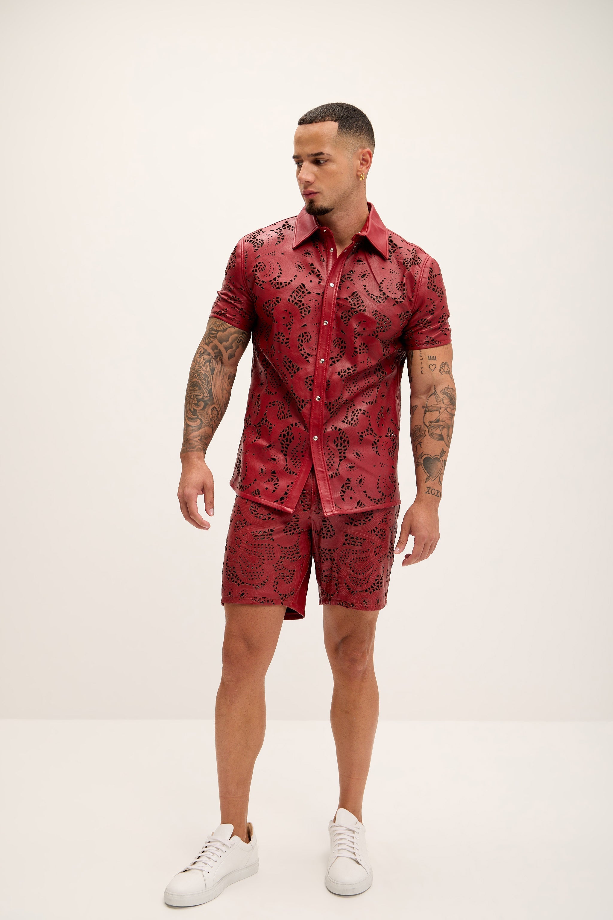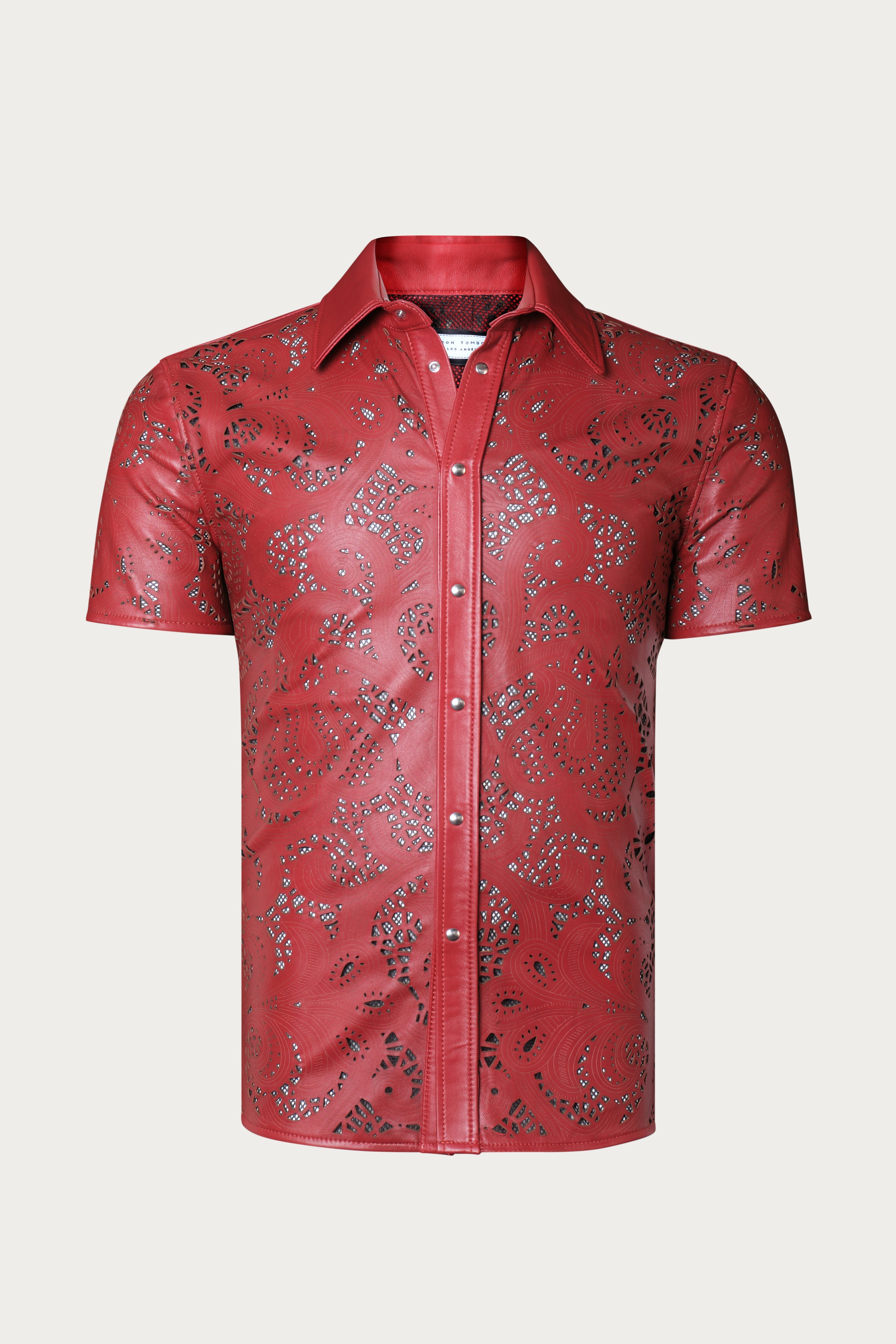 Cut-out Laser Leather Shirt - Red