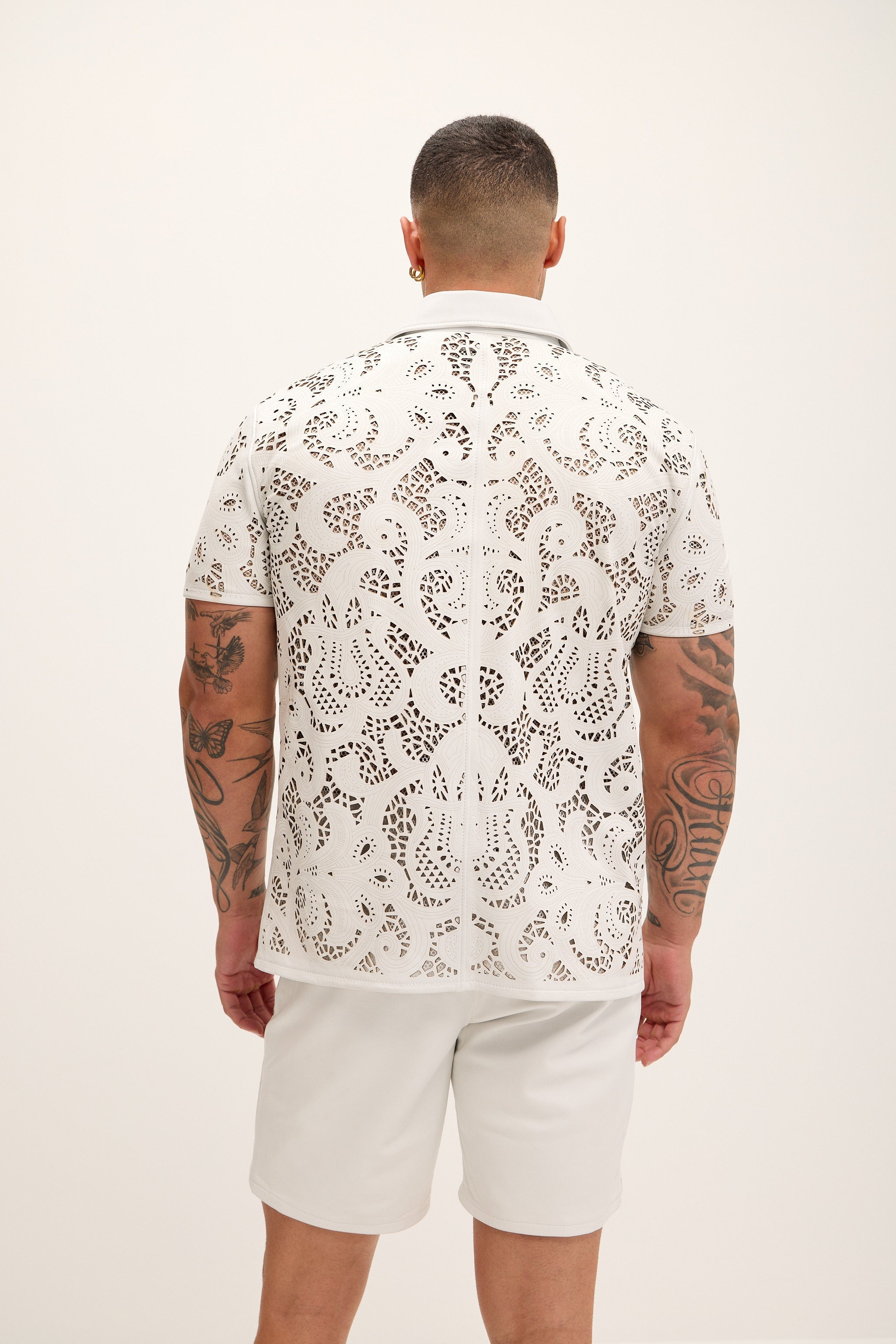 Cut-out Laser Leather Shirt - White