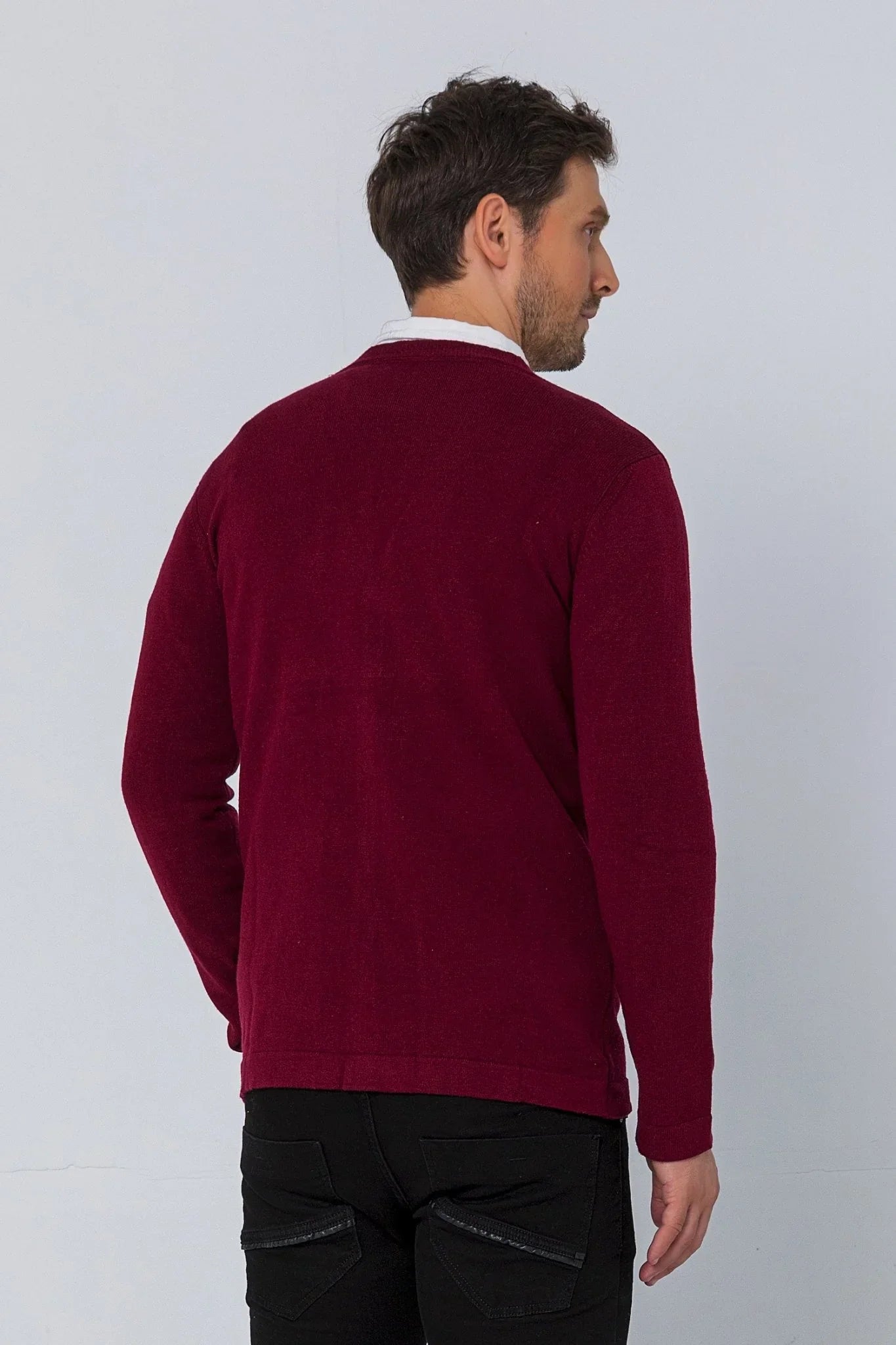Classic V-neck Button Front Knit Shirt - Burgundy