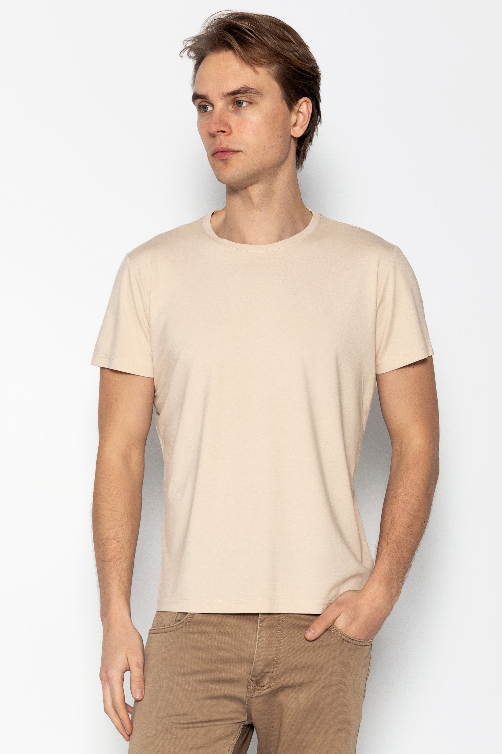 Fitted Lightweight Crew-Neck T-Shirt - Beige
