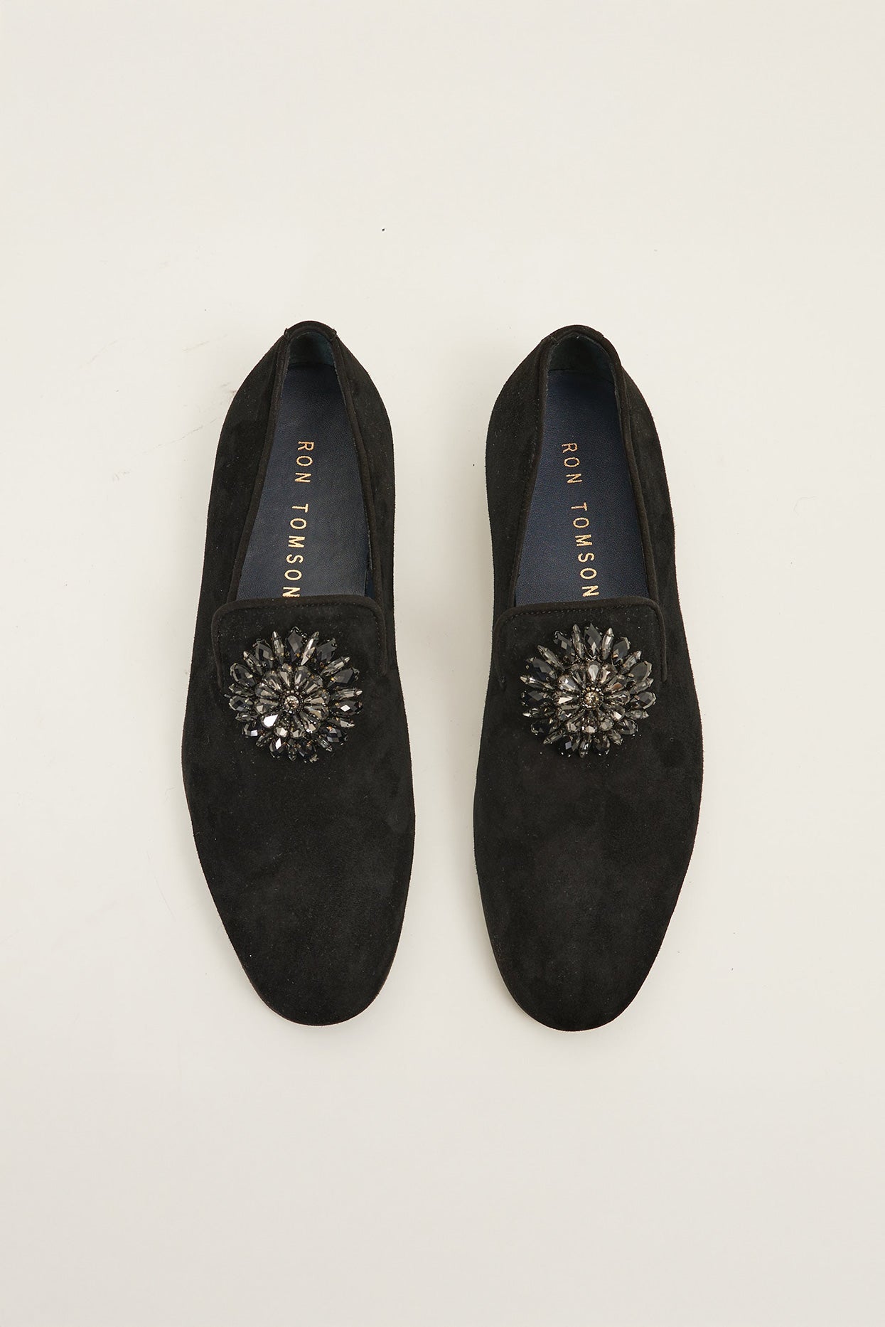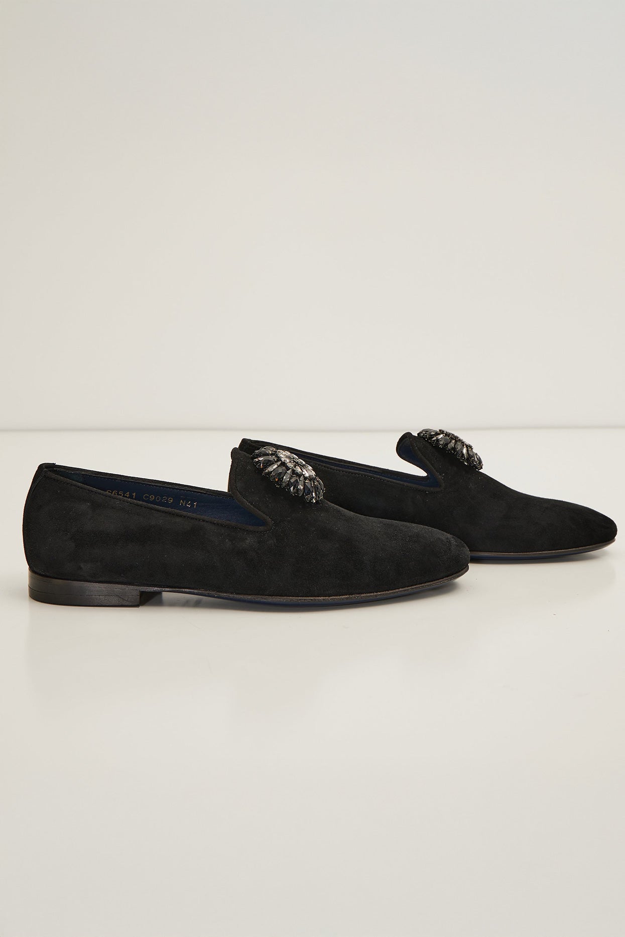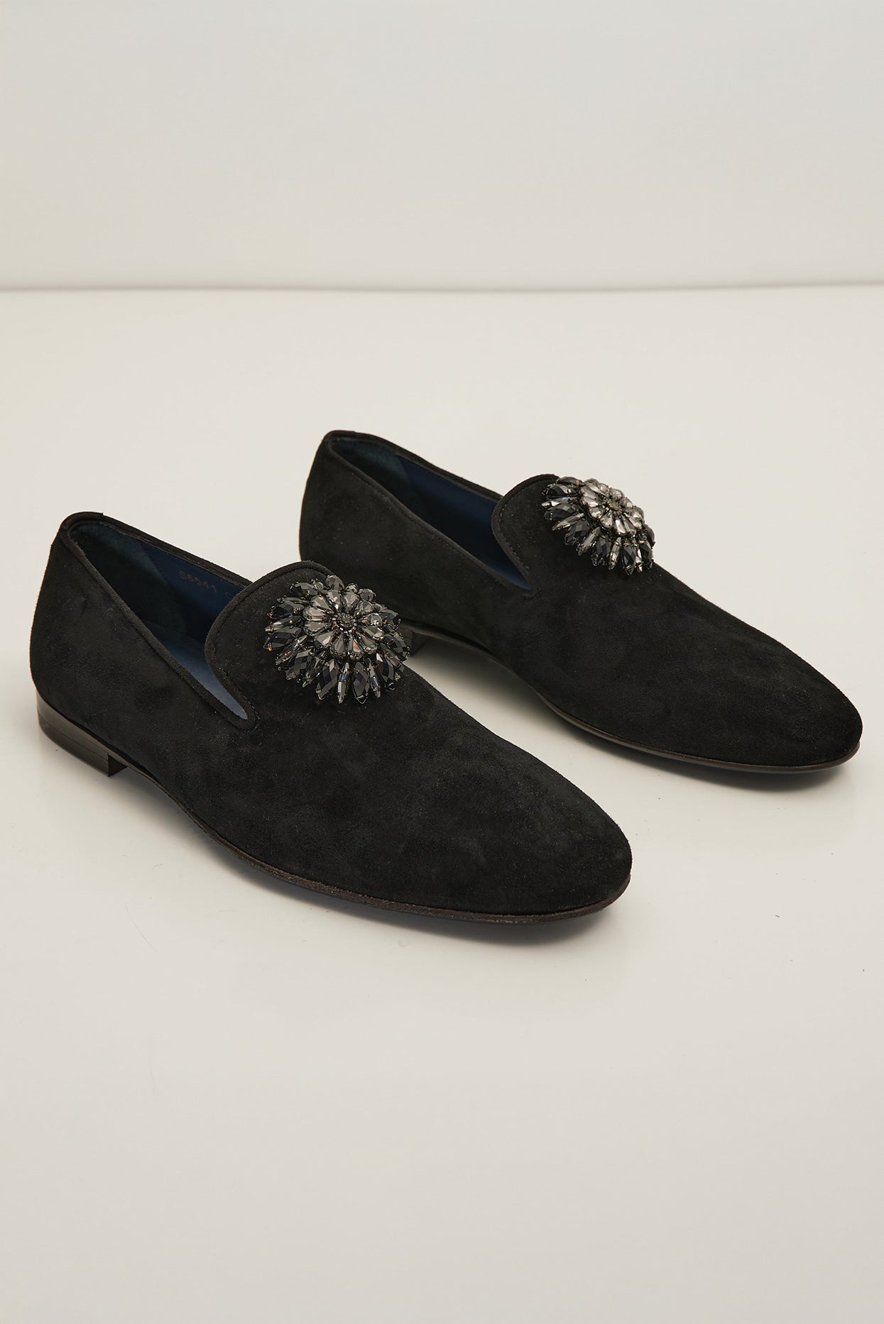 The Crystal Jewel Formal Leather Loafer - Black Suede