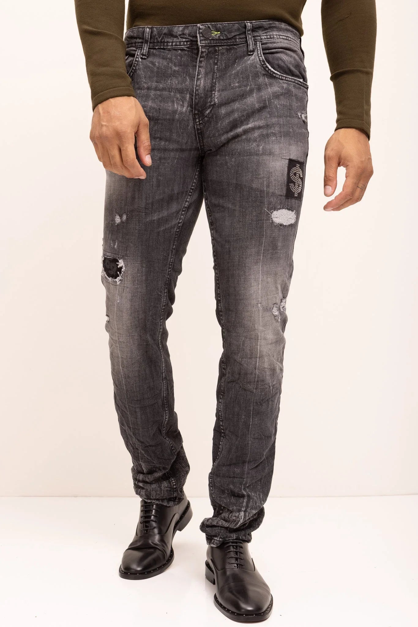 The Studded Cap Toe Oxfords Polished Leather - Black