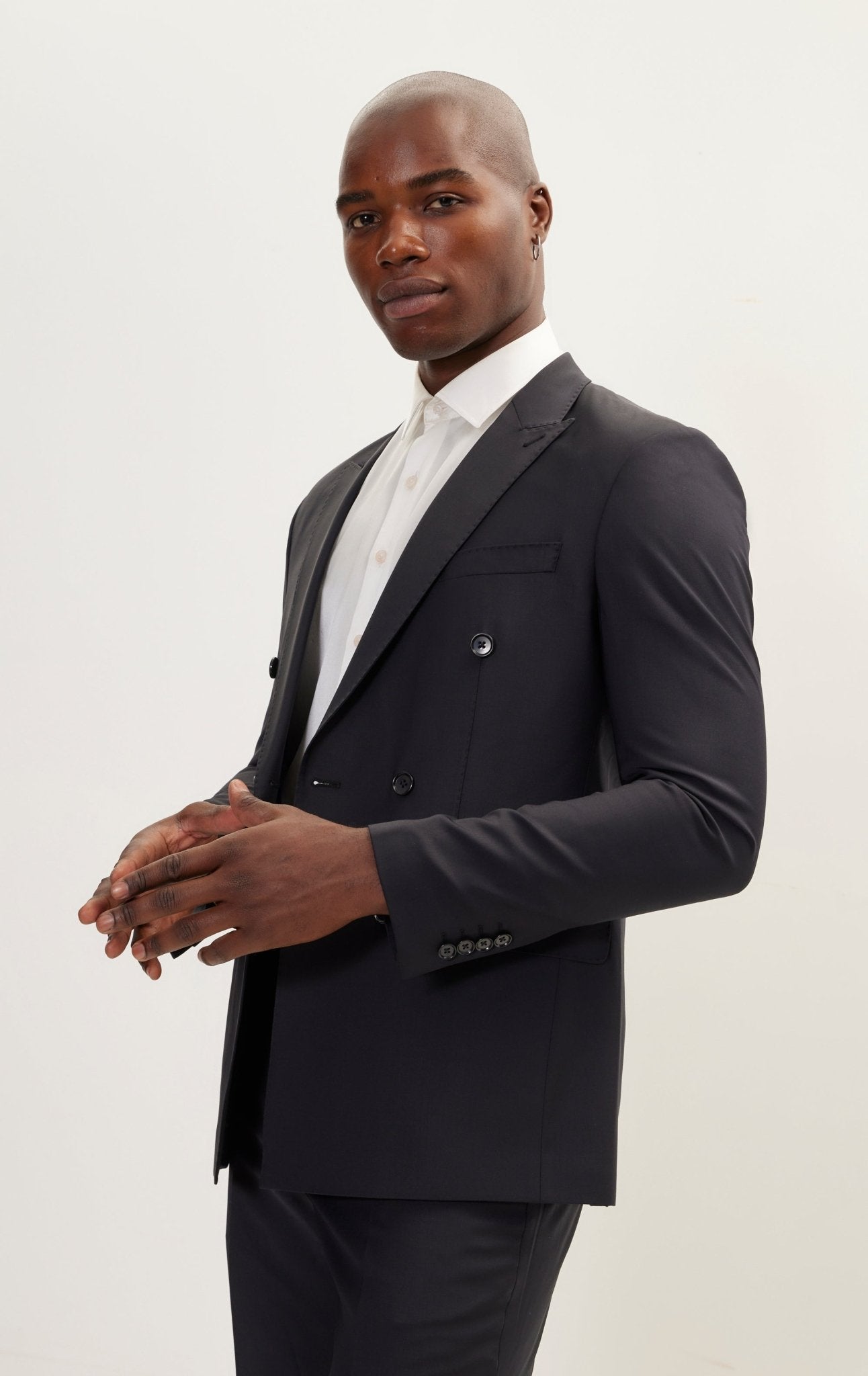 Super 120S Merino Wool Double Breasted Suit - Cobalt Black