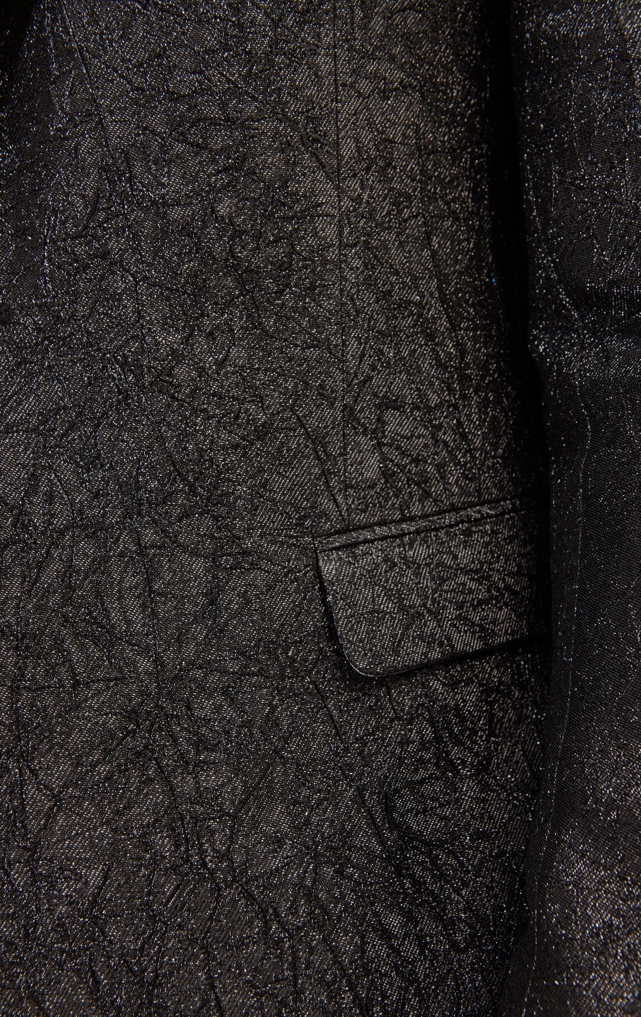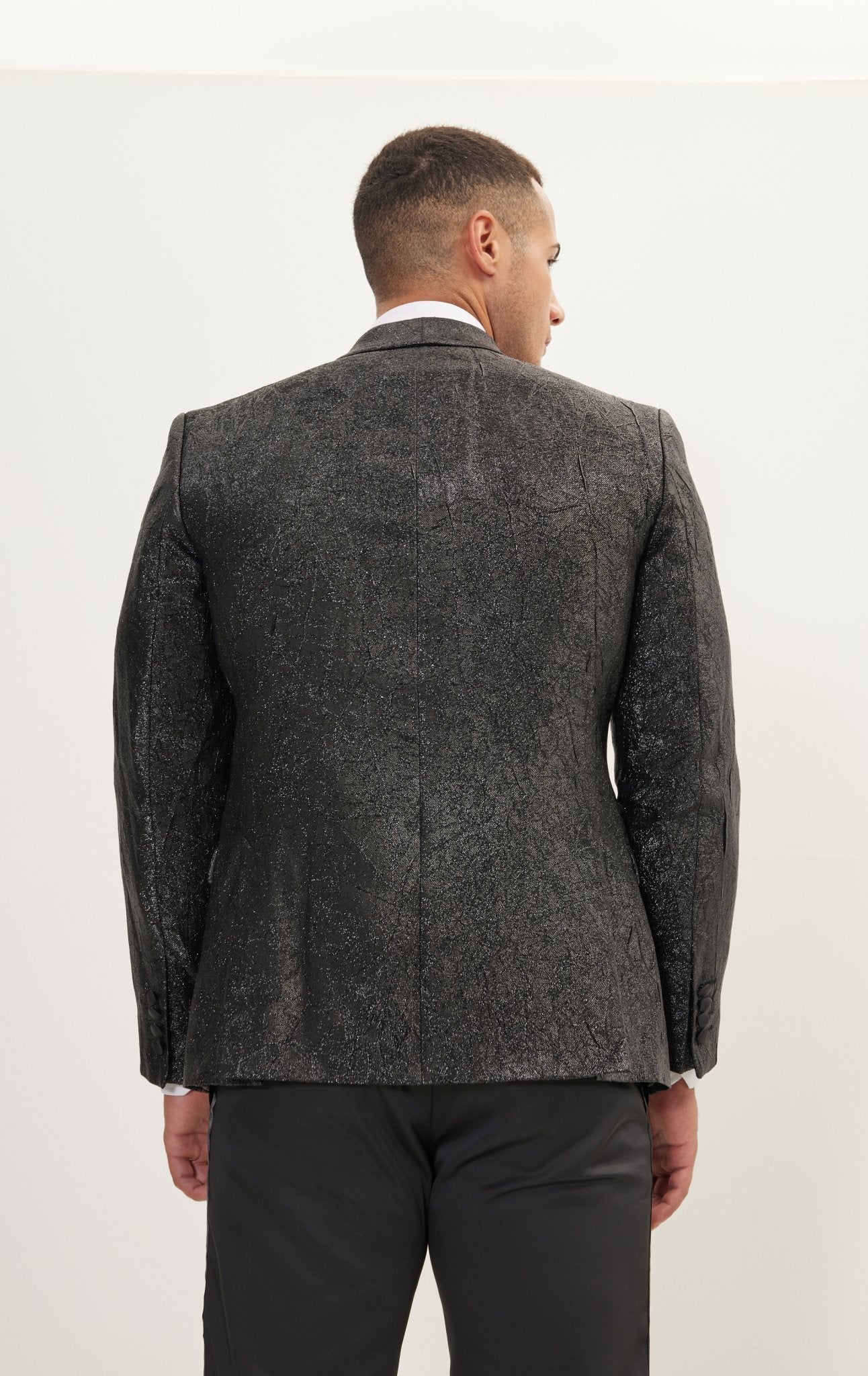 Crack Texture Pleated Metallic Tuxedo Jacket - Black
