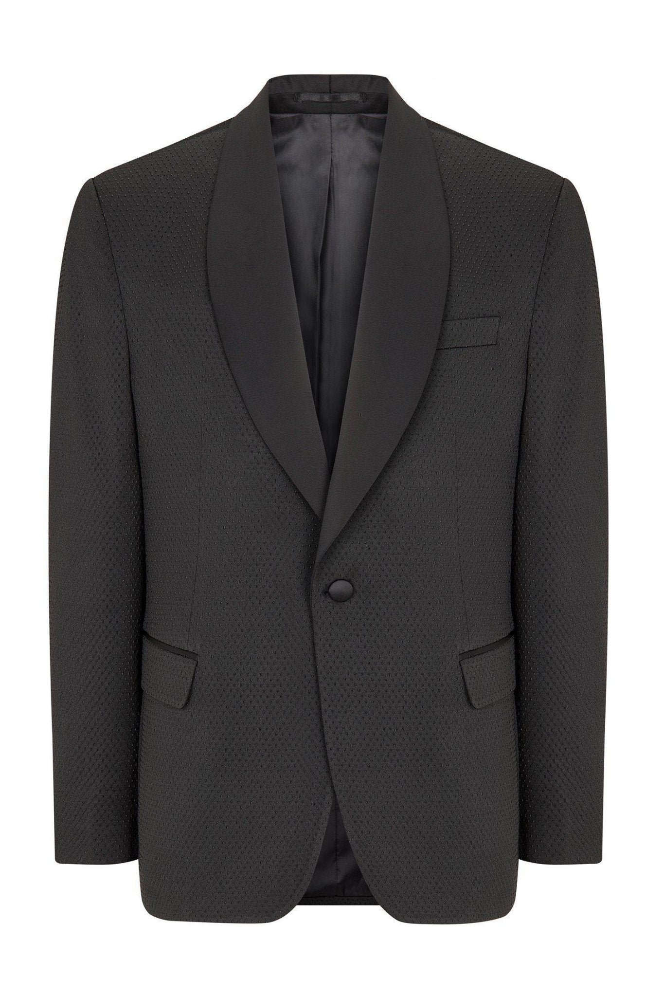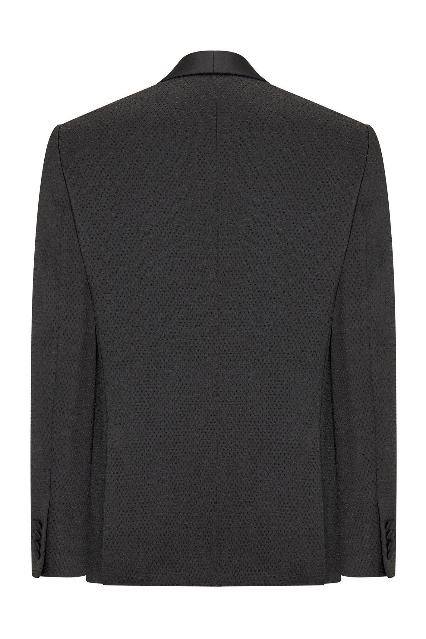 Swiss Dot Embroidery Shawl Lapel Tuxedo Jacket - Black