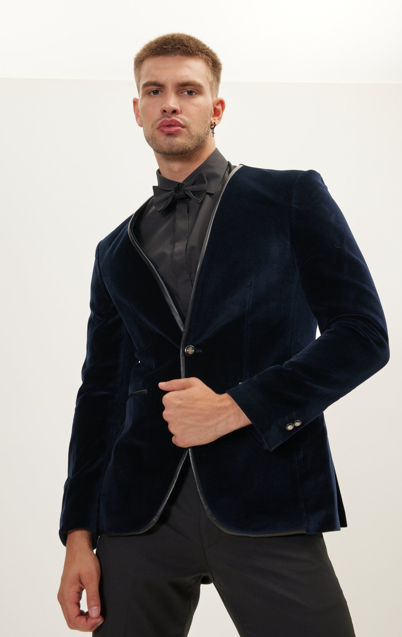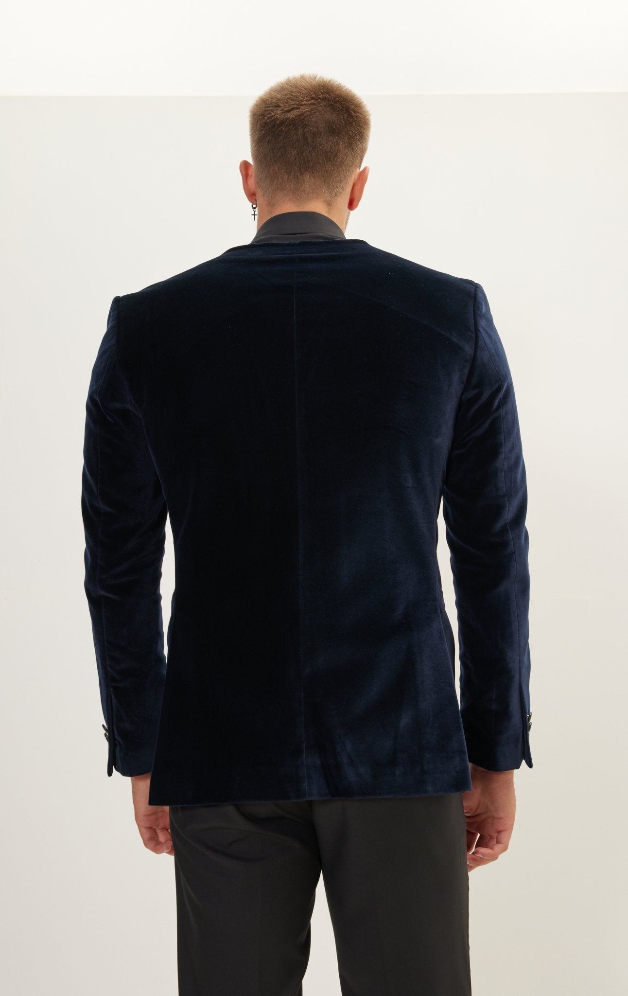 Collarless Italian Velvet Tuxedo Jacket - Navy