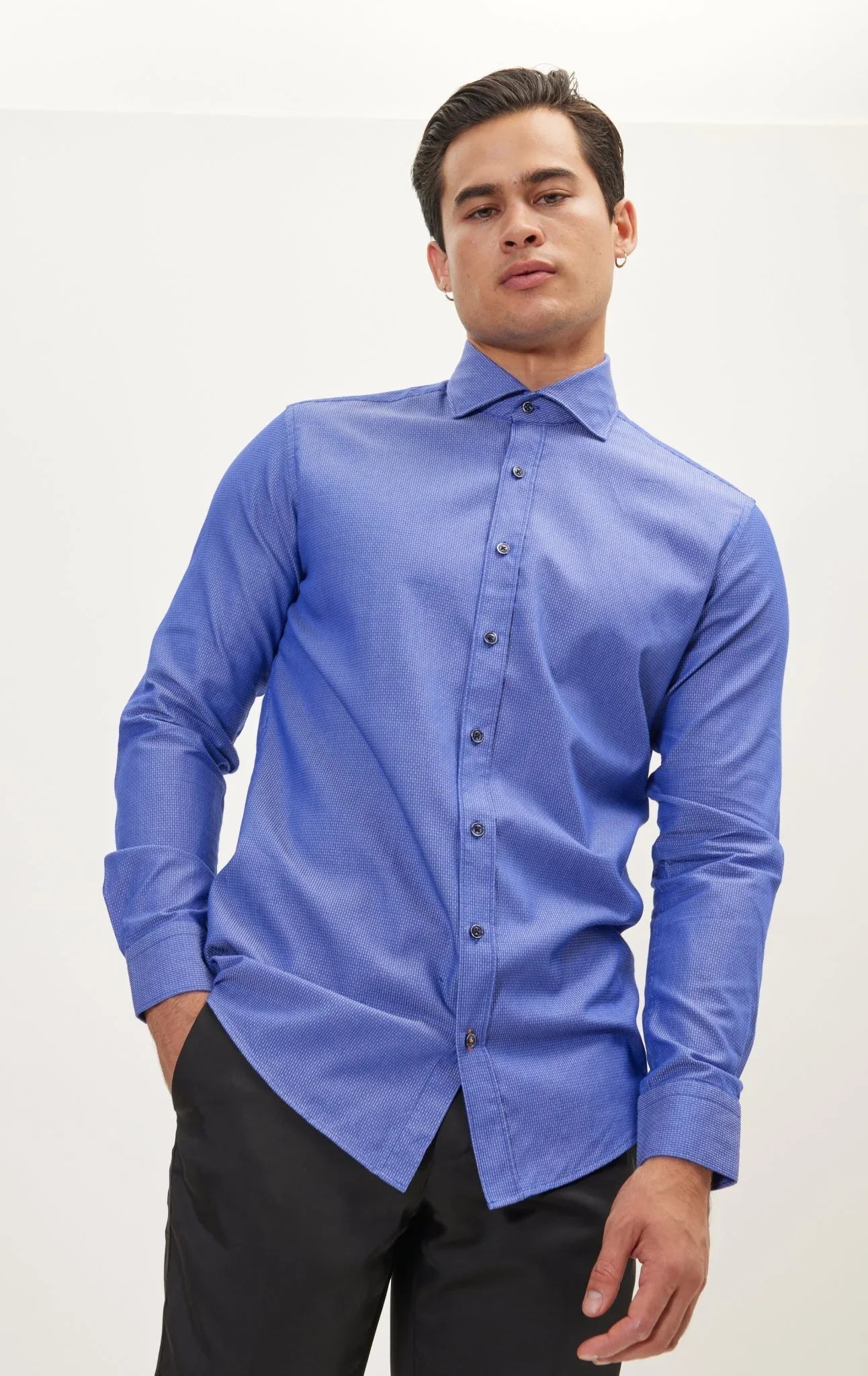 Jacquard Cotton Tonal Button Dress Shirt - Dark Blue