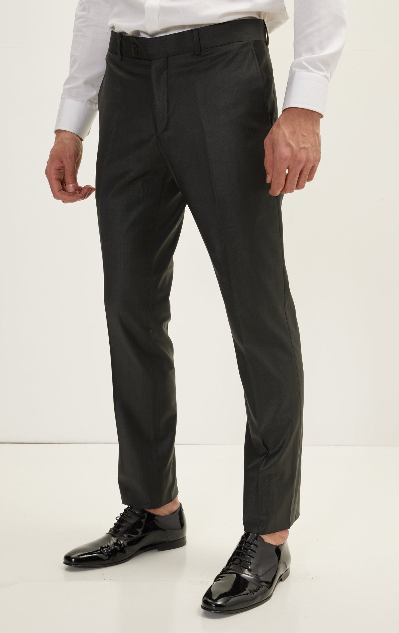 The immaculate merino wool suit features a twill finish and a tailored slim fit. Modern peak lapel 6x2 button closure. Half canvassed with full lining. Responsible Wool Standard (RWS) Certified.