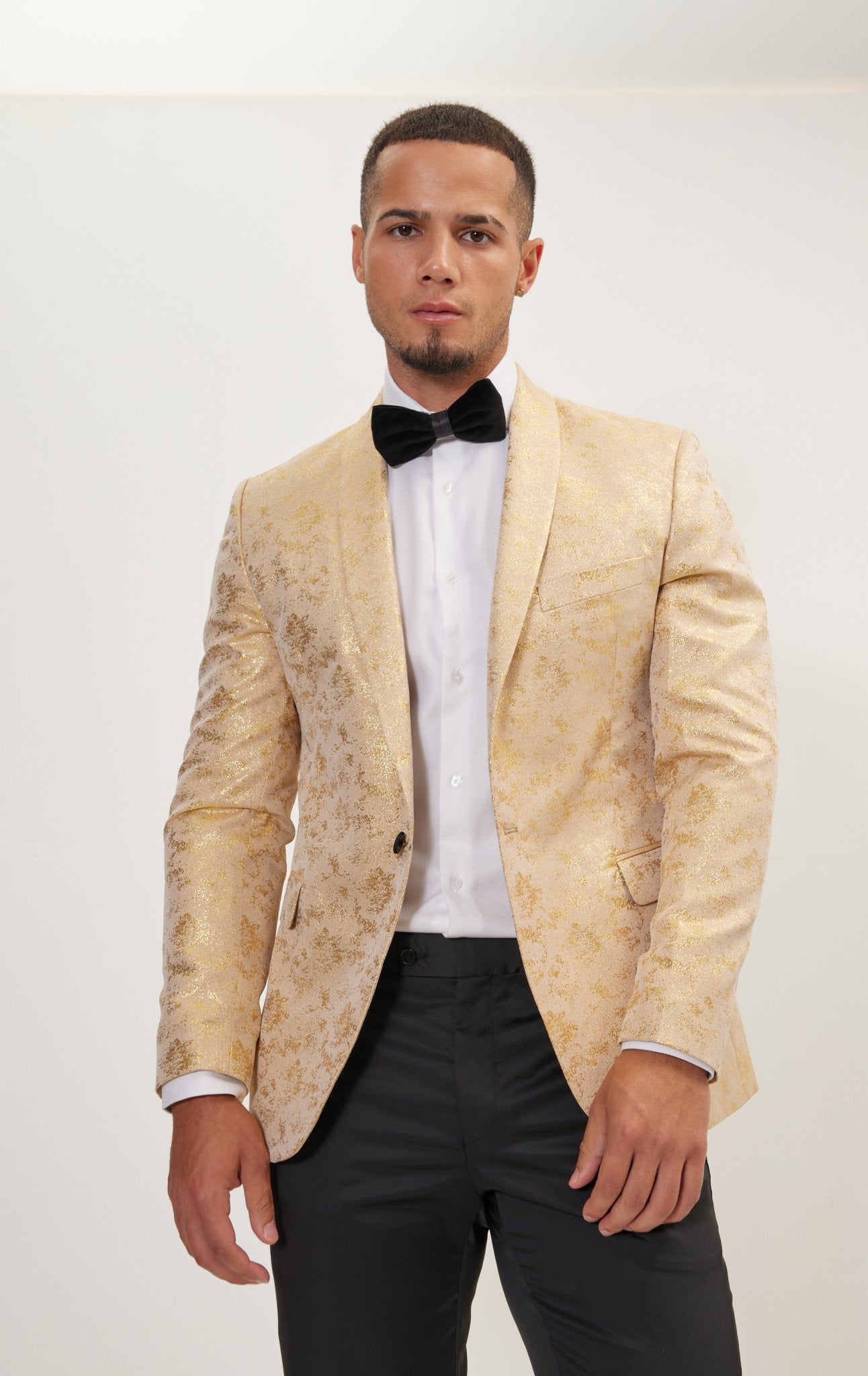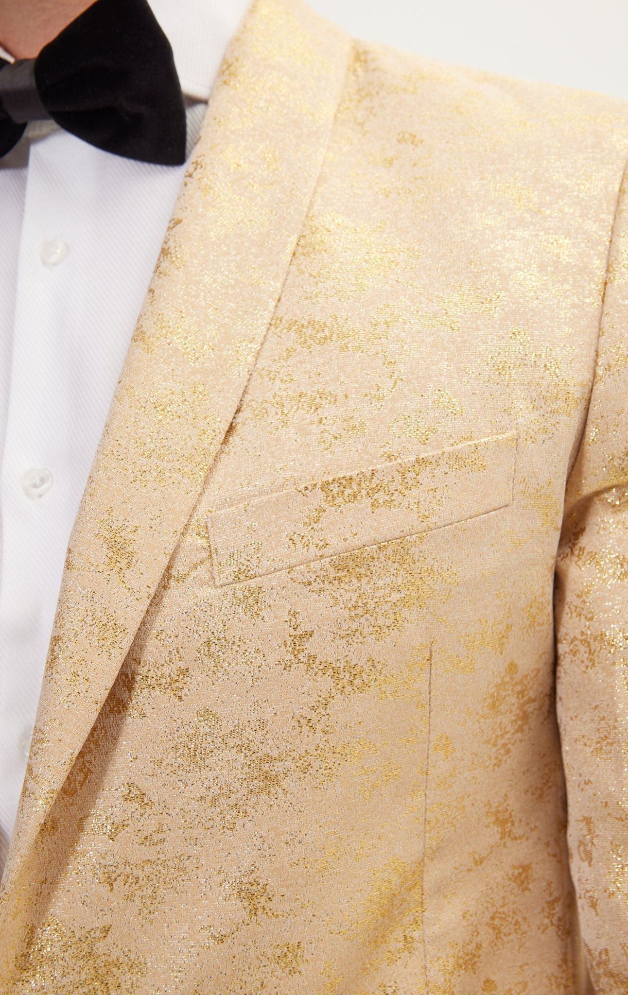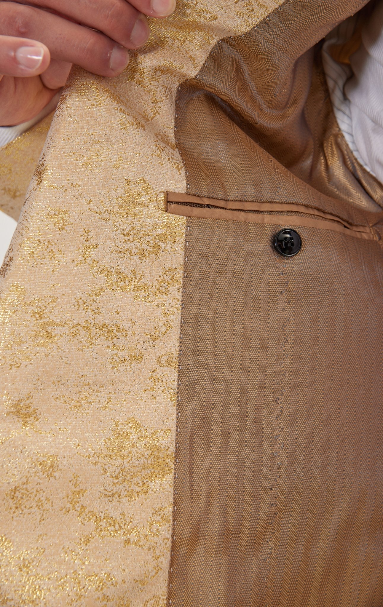 Metallic Foil Shimmer Tuxedo Jacket - Nude Gold