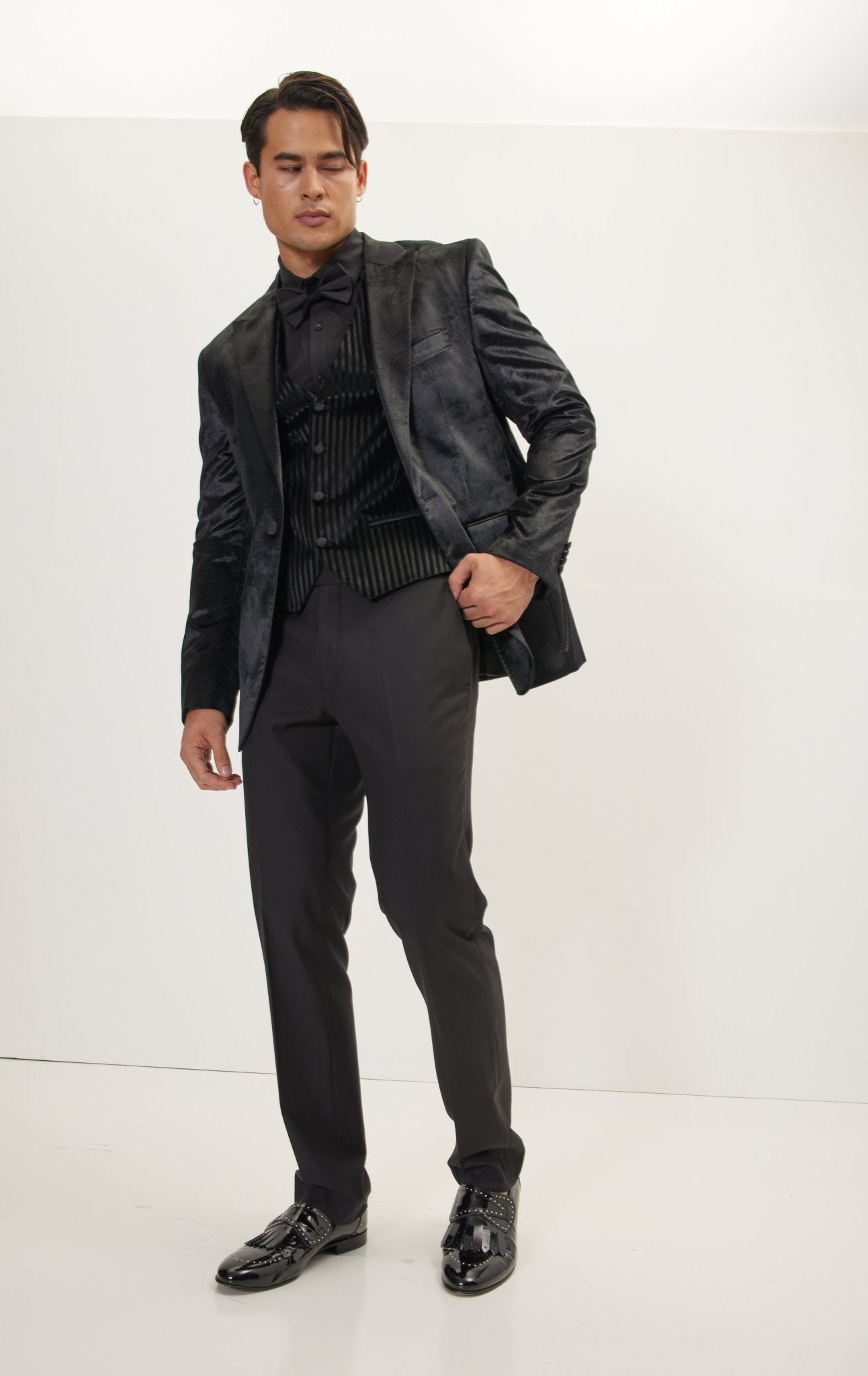 Polka Dot Peak Lapel Italian Velvet Tuxedo Jacket - Black